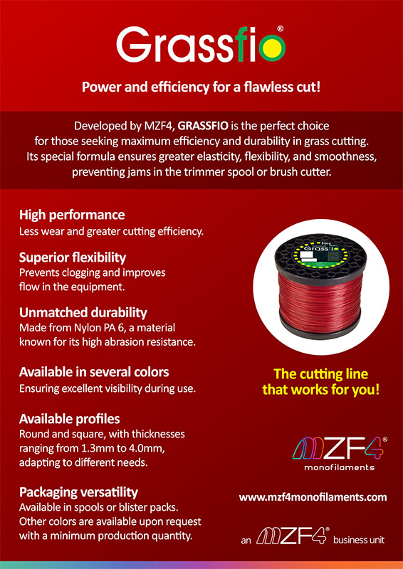 GRASSFIO delivers performance you can see in the cut and feel in productivity. Developed by MZF4, its special formula provides superior elasticity, flexibility, and smoothness (preventing jamming and ensuring a continuous workflow).
